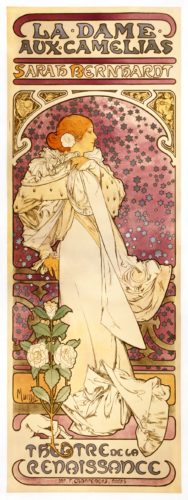 Alfons Mucha- 1896 – La Dame aux Camélias – Sarah Bernhardt (public domain)
